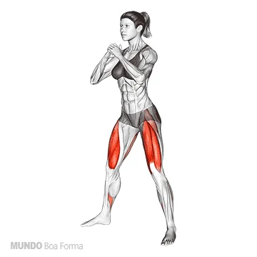 • Como fazer: Fique em pé com os pés afastados na largura dos ombros, desça os quadris até formar um ângulo de 90° e retorne.