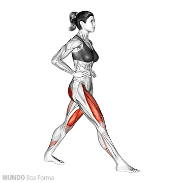 • Como fazer: Dê um passo à frente e desça até o joelho de trás quase tocar o chão, alternando as pernas.